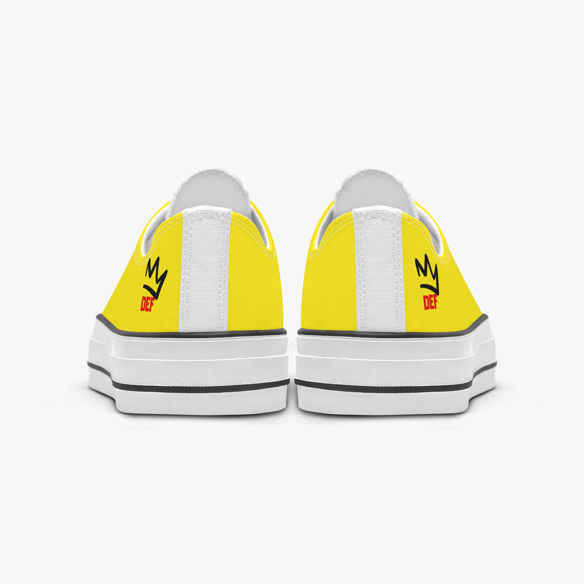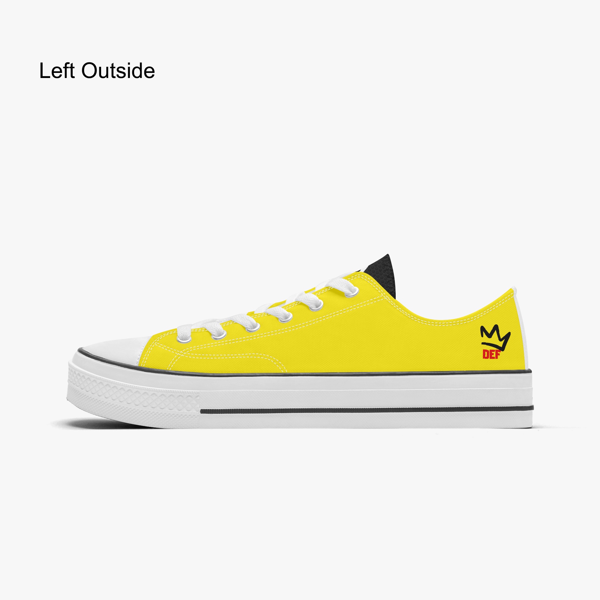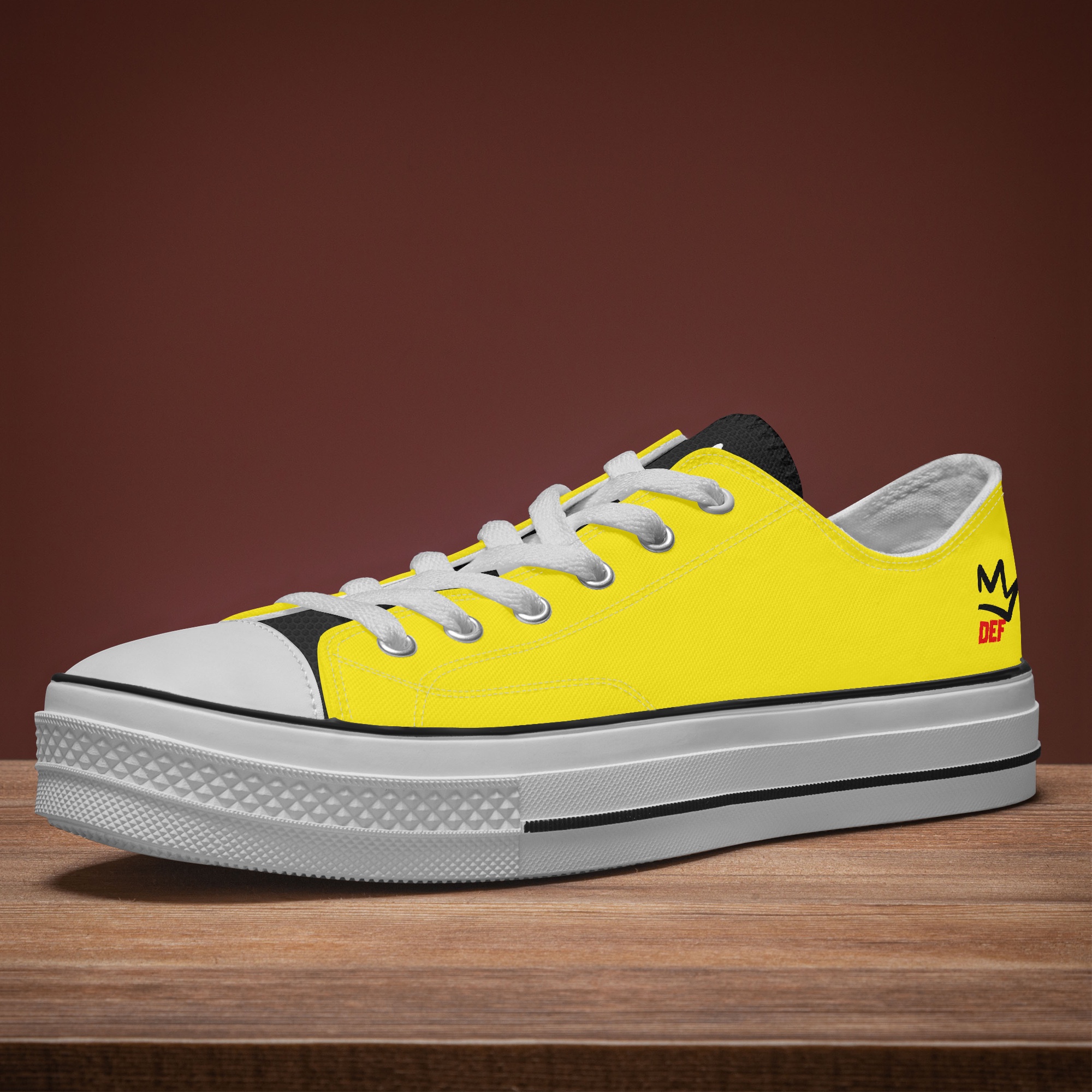 Shine bright like royalty with the Def Sole Lemon Dynasty Low-Top Canvas Sneaks. These sunny yellow kicks feature a bold and vibrant hue that’s sure to turn heads. The contrasting black tongue provide a sleek and sophisticated finish, while the crown emblem adds a touch of regal flair.