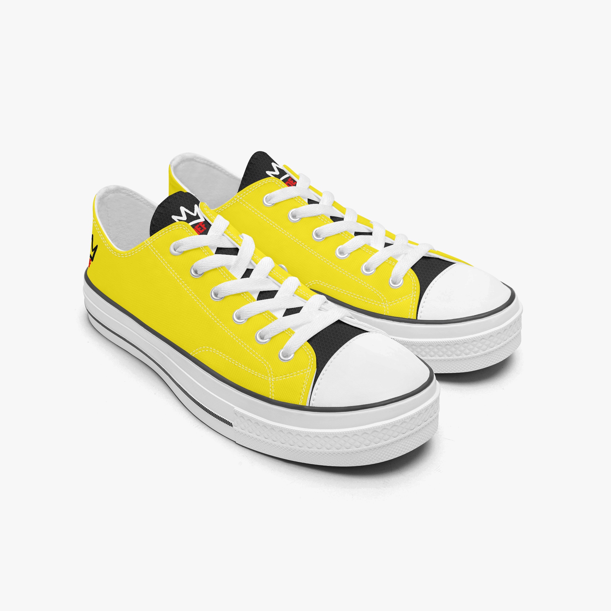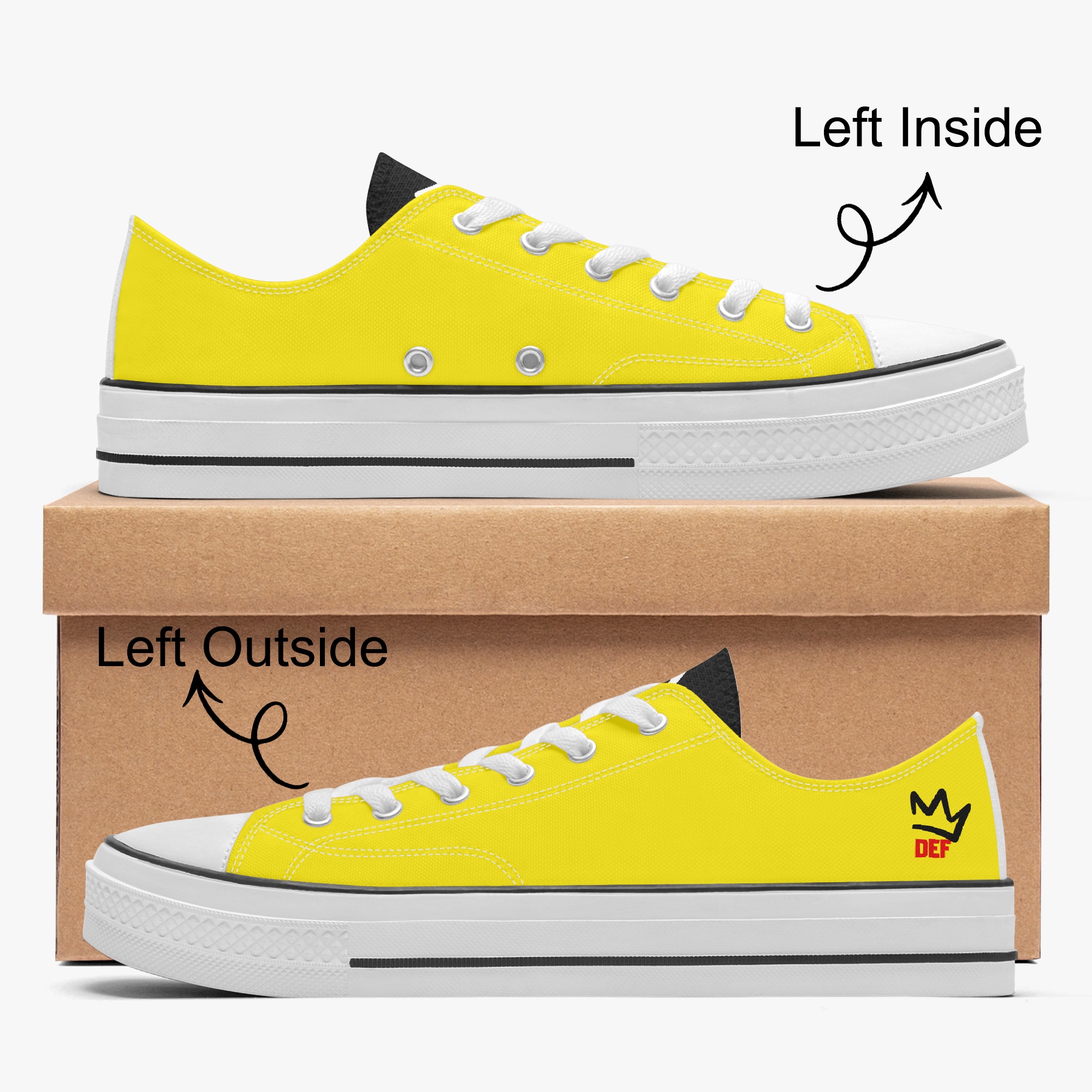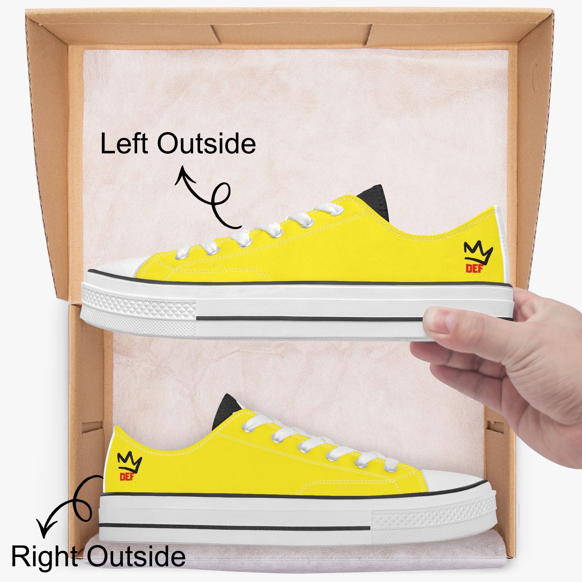 Shine bright like royalty with the Def Sole Lemon Dynasty Low-Top Canvas Sneaks. These sunny yellow kicks feature a bold and vibrant hue that’s sure to turn heads. The contrasting black tongue provide a sleek and sophisticated finish, while the crown emblem adds a touch of regal flair.