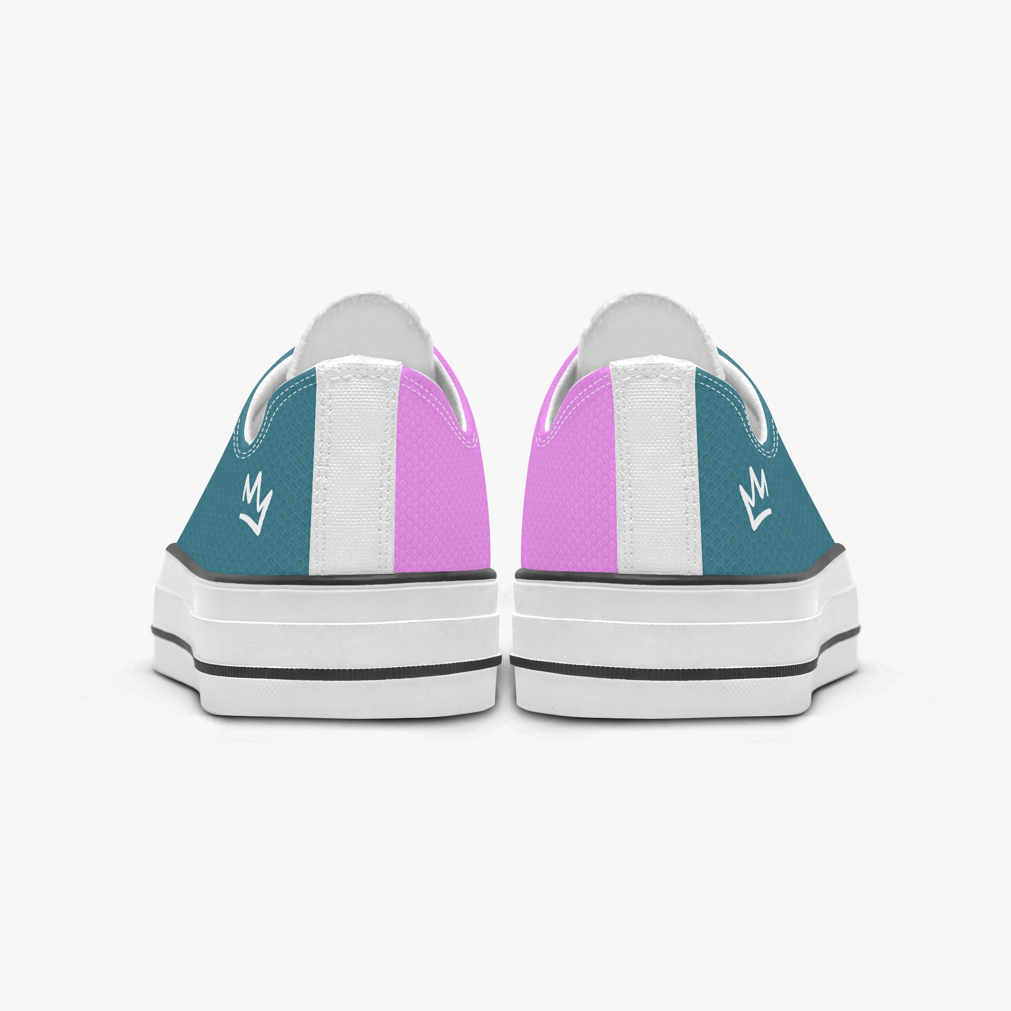 Indulge in a sweet and stylish treat with the Def Sole Mint Neapolitan Dynasty. These low-top canvas sneakers feature a refreshing mint mint outer skin, accented by a playful pink inner skin and a classic white tongue. The iconic crown logo adds a touch of royal flair, making these kicks a true statement piece.