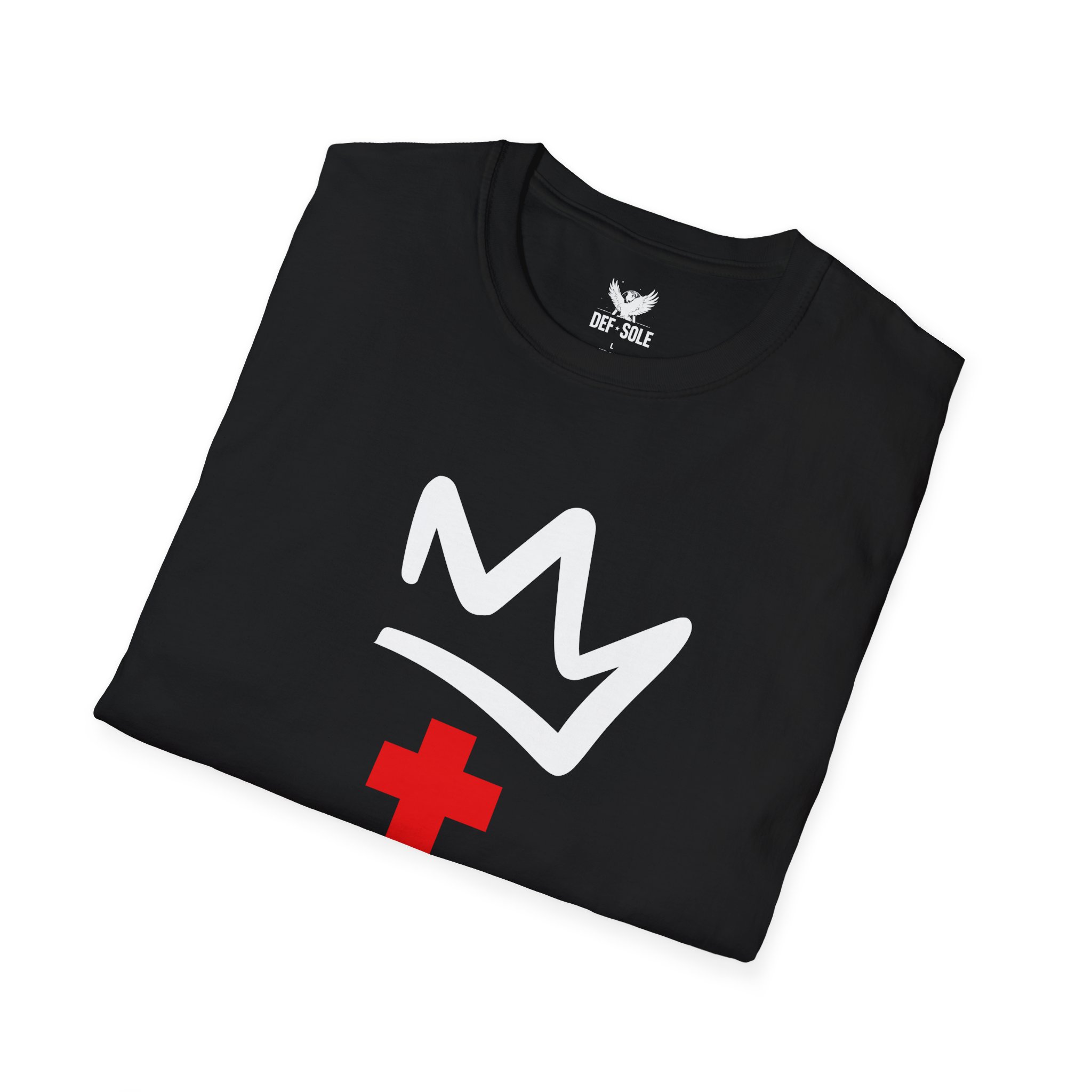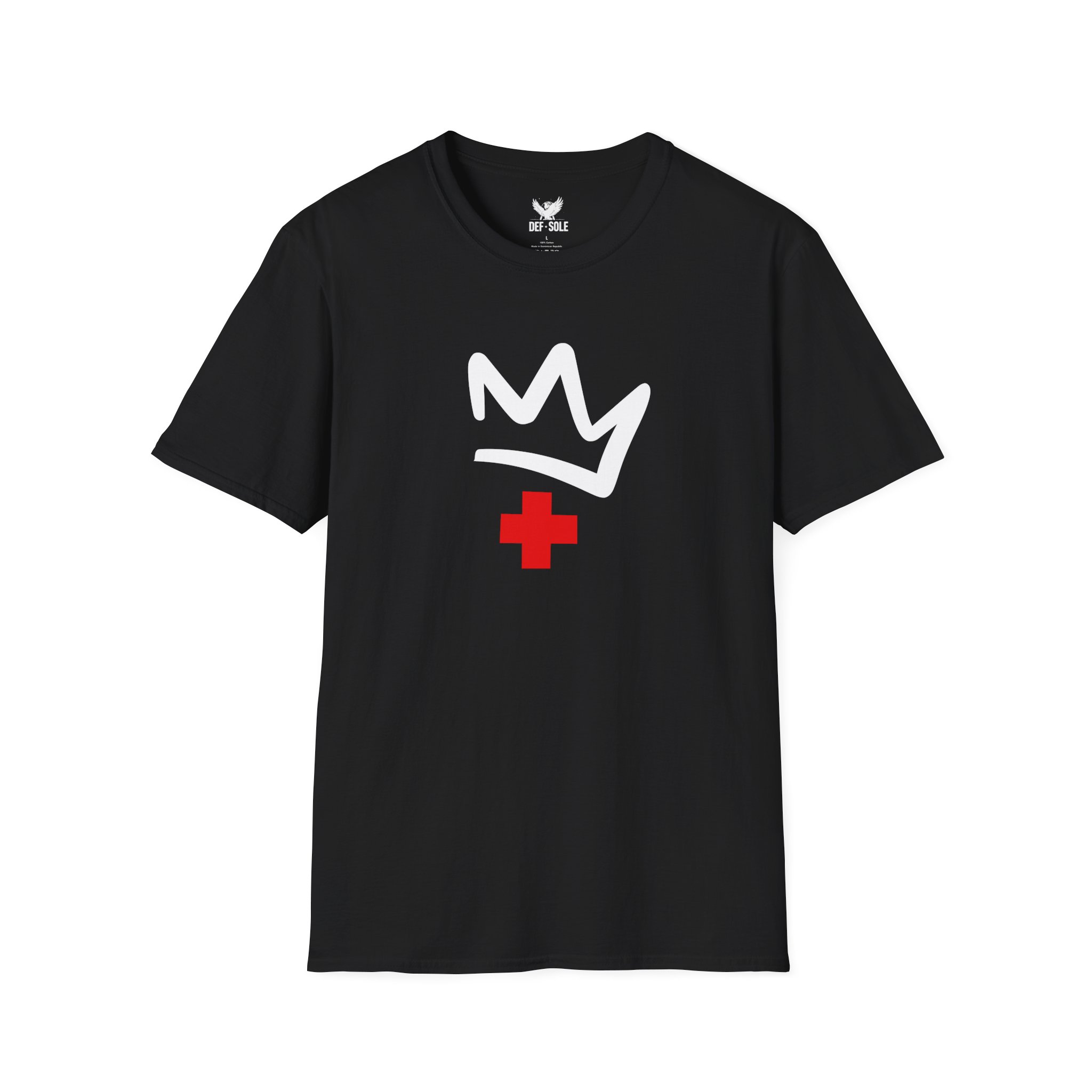 Def Sole Sneaks Brand DEF CROWN Tee. Made from very soft materials, this tee is 100% cotton for solid colors. Heather colors and sports grey include polyester. The shoulders have twill tape for improved durability. There are no side seams. The collar is made with ribbed knitting to prevent curling damage.