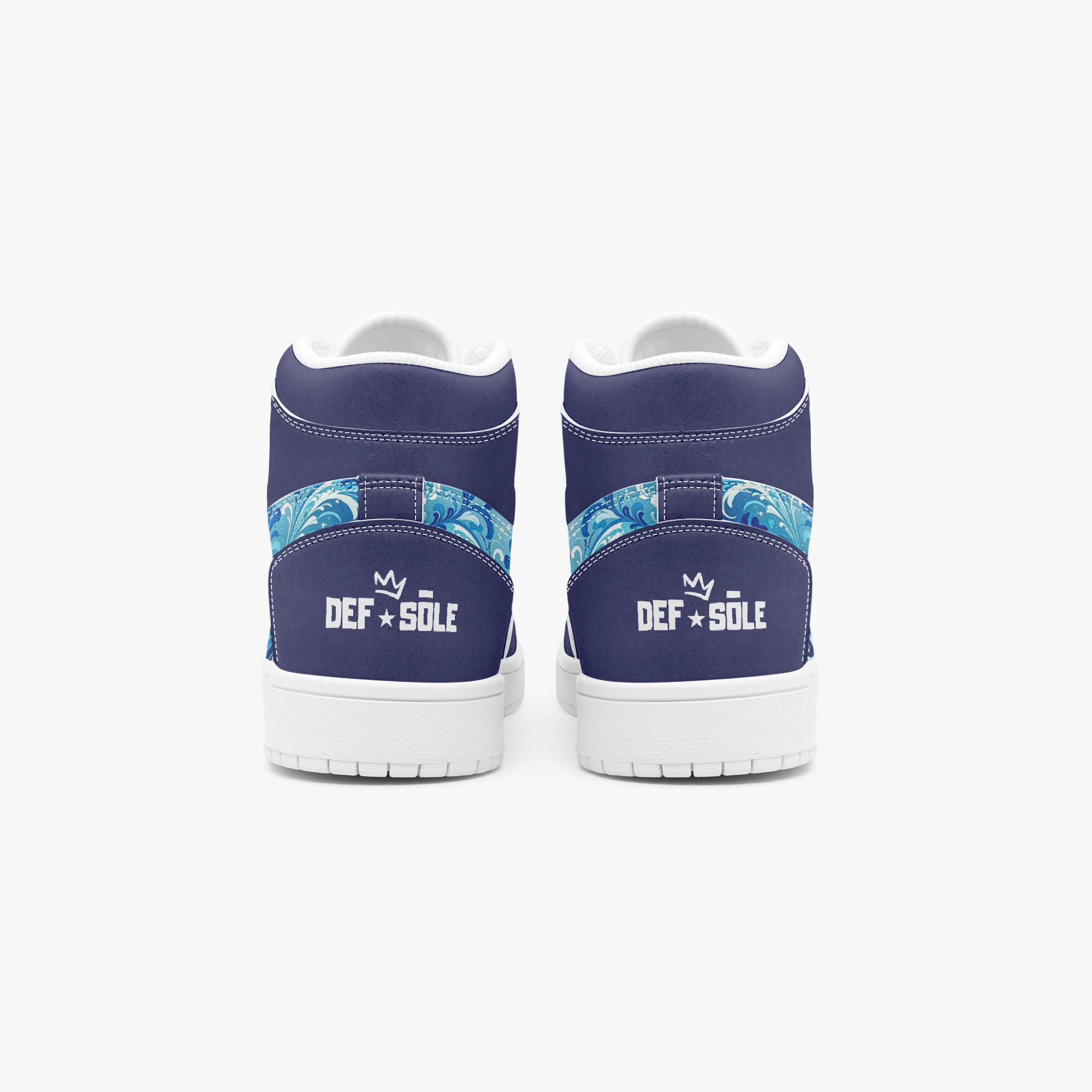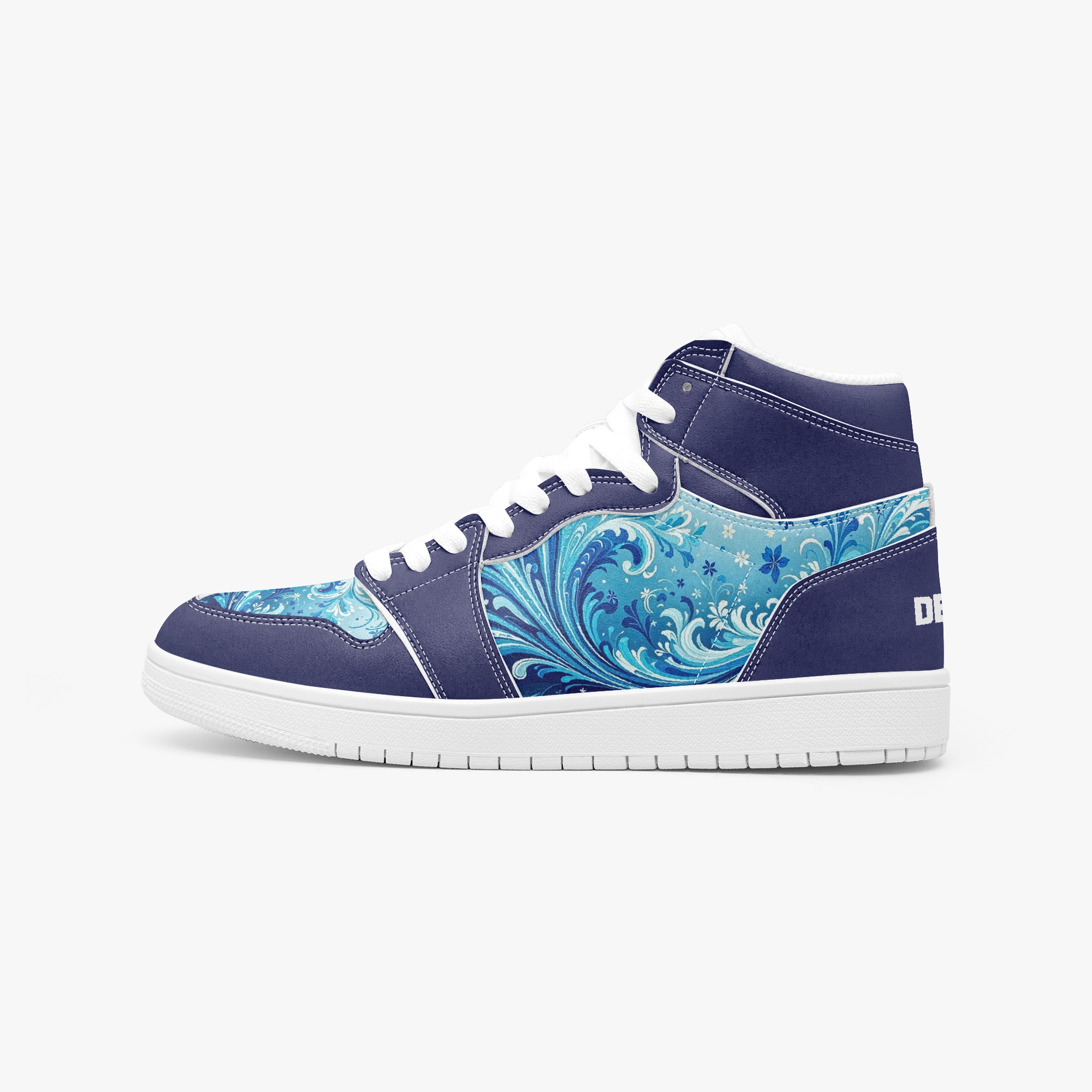 Dive into a world of oceanic wonder with the Def Sole DS-400 High-Top Leather Sneaks. These high-top sneakers feature a mesmerizing marbled design in shades of blue and white, reminiscent of swirling ocean currents. The premium leather construction offers durability and a luxurious feel, while the high-top design provides added support and ankle protection.