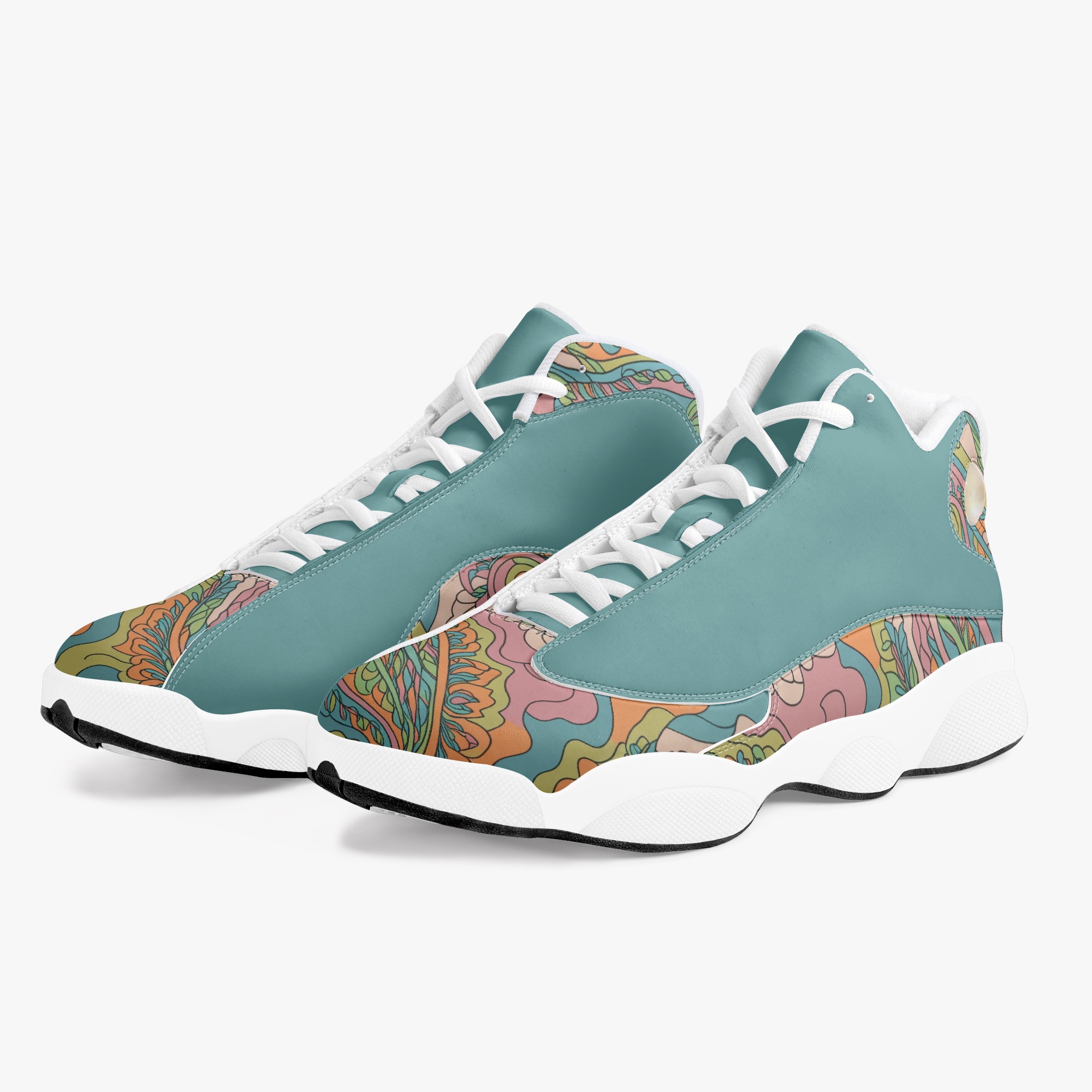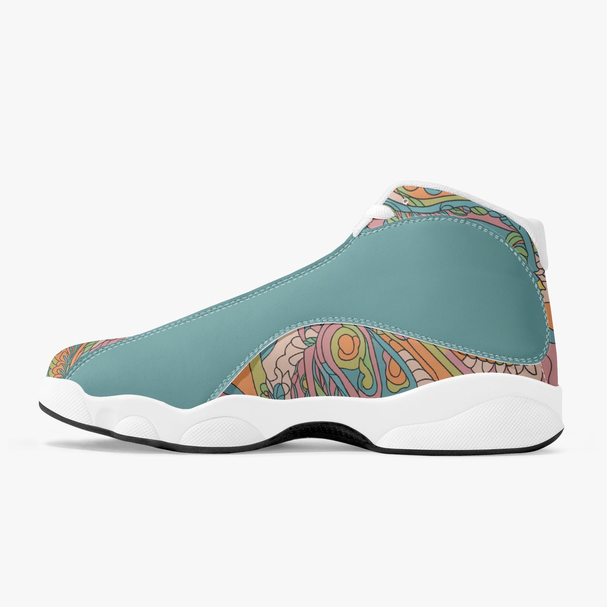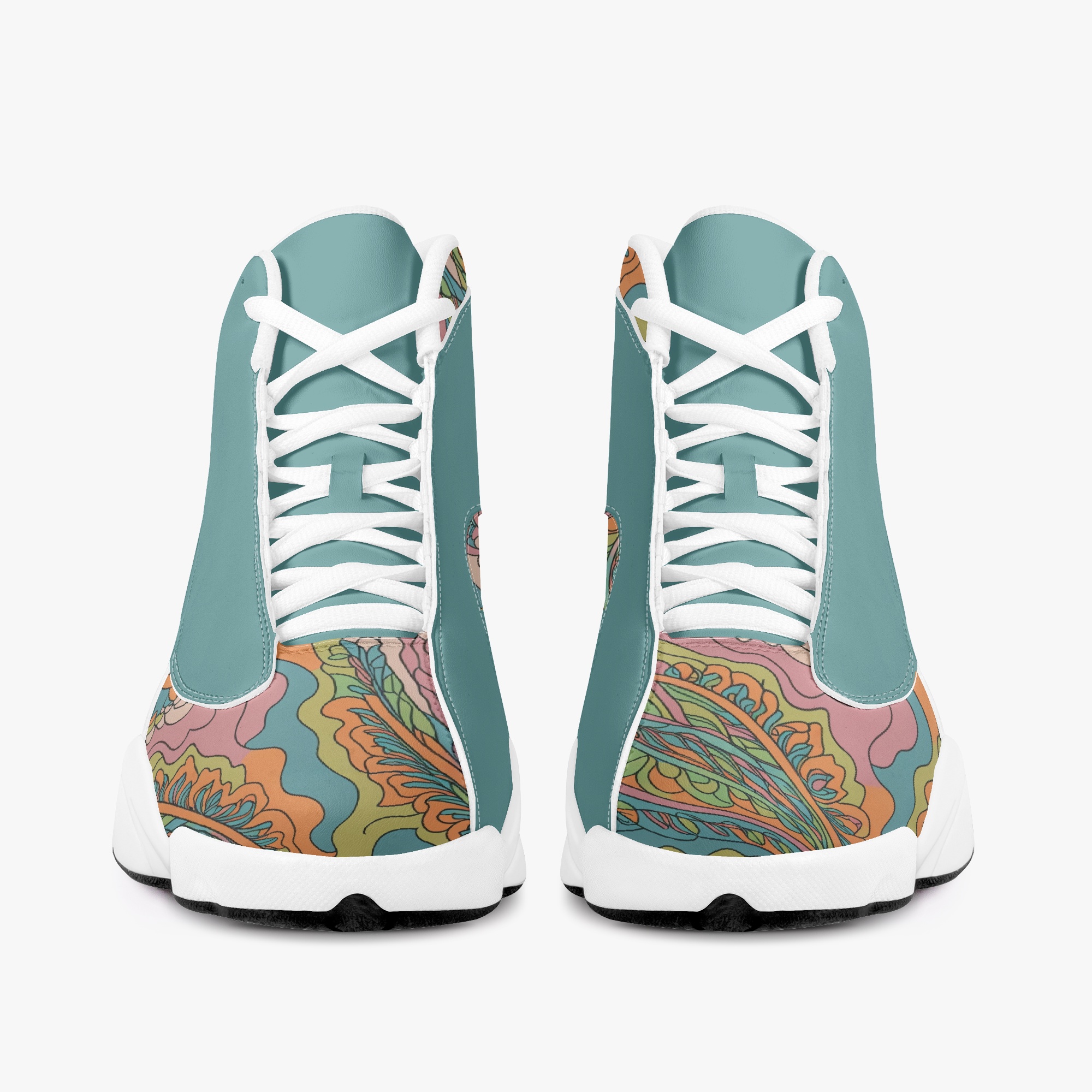Step into a world of psychedelic style with the Def Sole Vault High-Top Leather Basketball Sneakers in Teal Swirl. These eye-catching sneakers feature a vibrant and Paisley teal pattern that’s sure to turn heads. Designed to provide superior performance on the court while making a bold statement. Crafted from premium leather, these sneakers offer durability and a luxurious feel. The high-top design provides added support and ankle protection, ensuring maximum stability during intense gameplay.