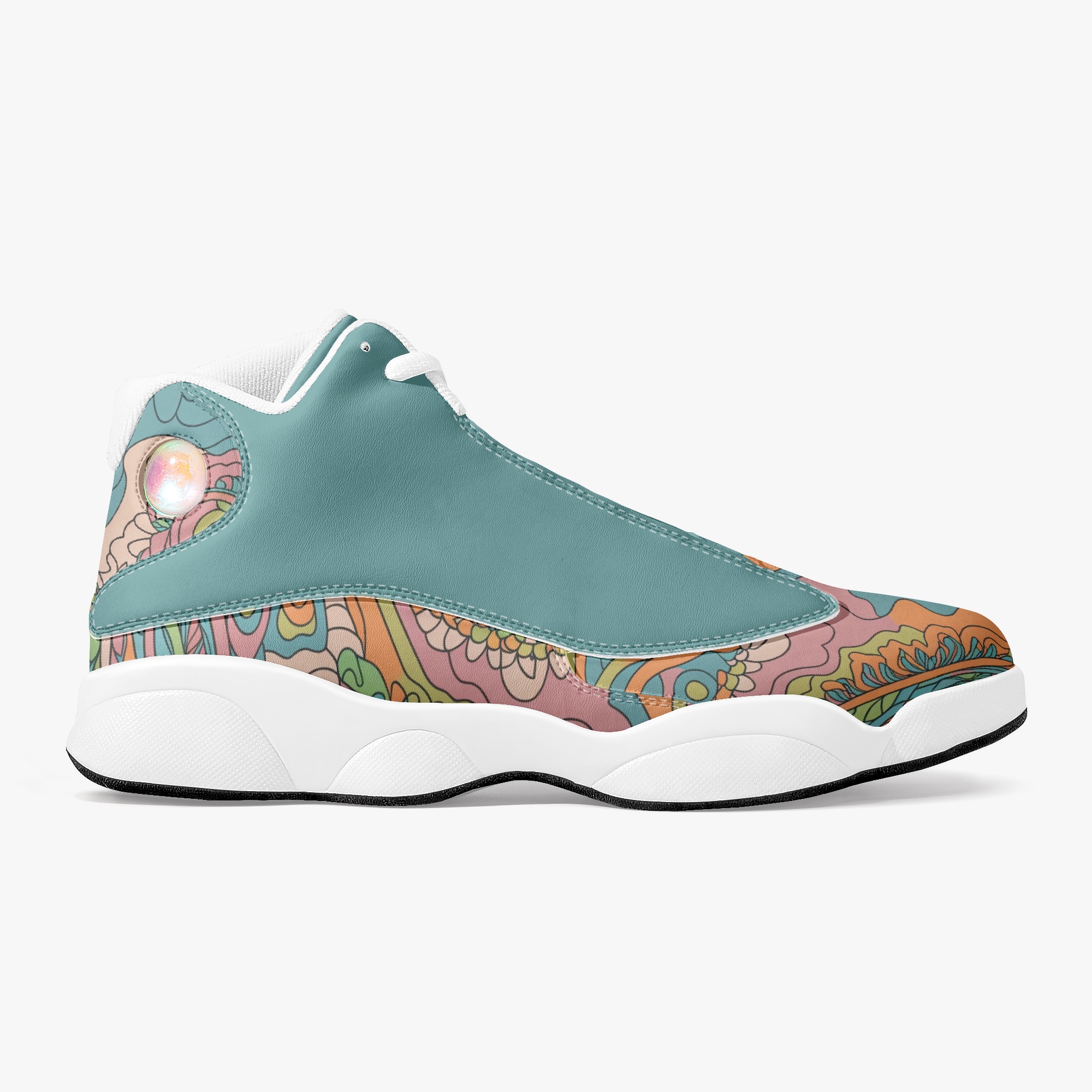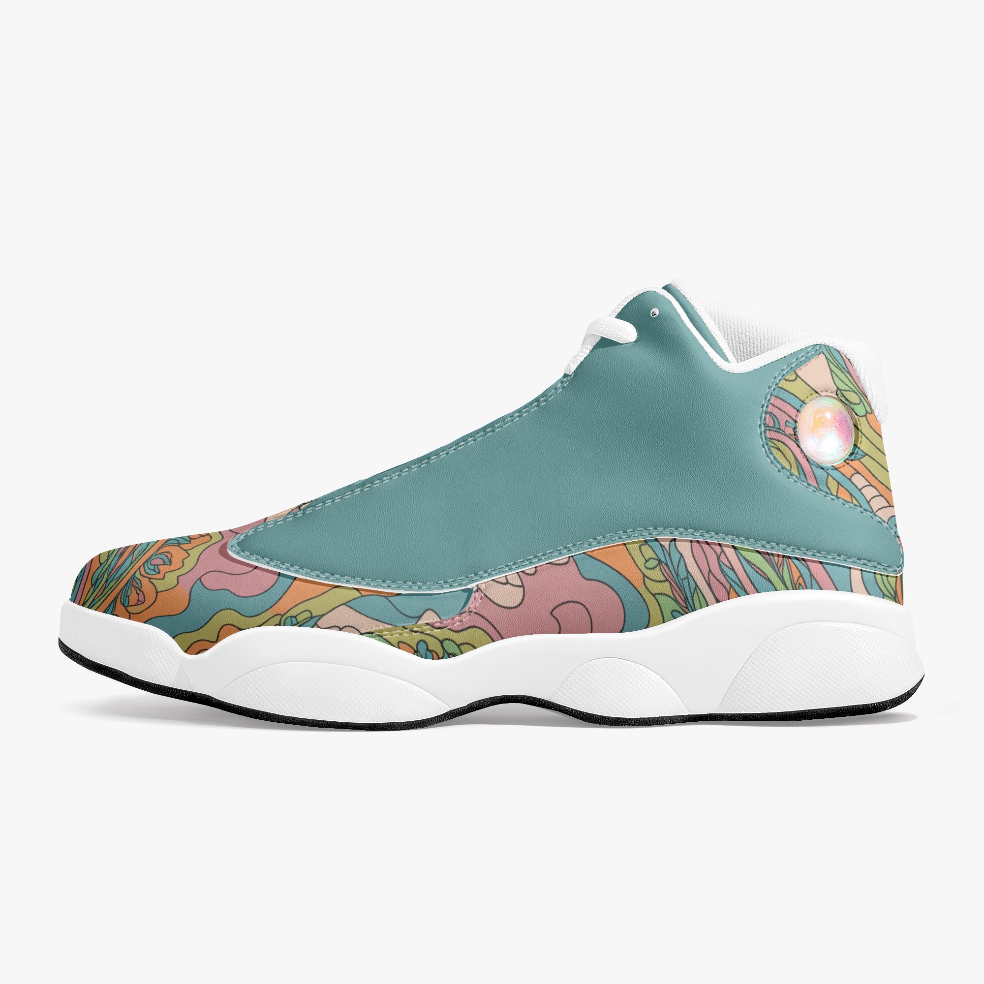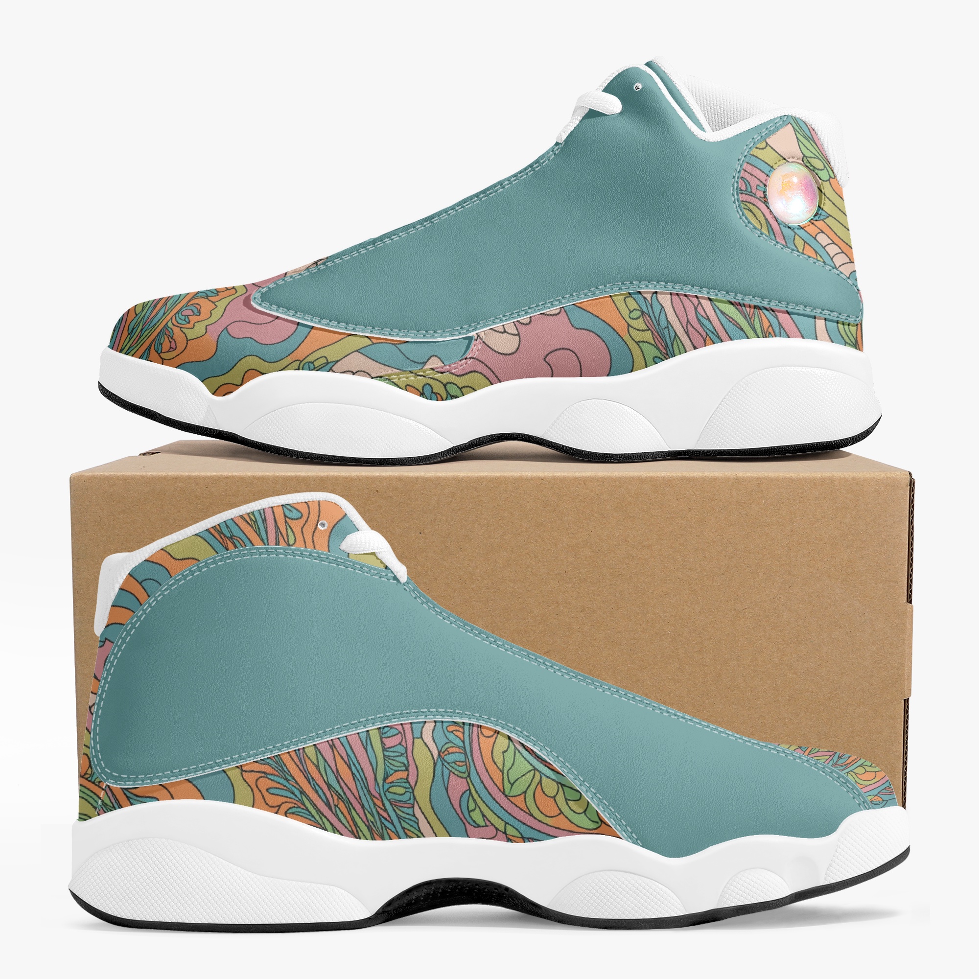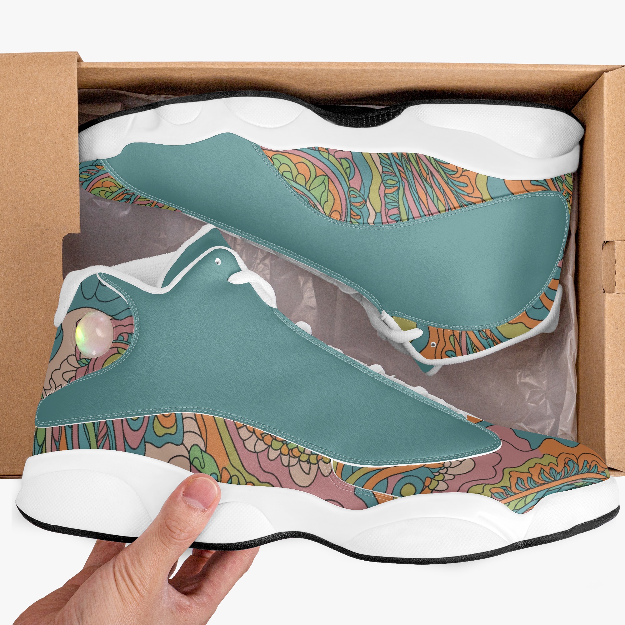 Step into a world of psychedelic style with the Def Sole Vault High-Top Leather Basketball Sneakers in Teal Swirl. These eye-catching sneakers feature a vibrant and Paisley teal pattern that’s sure to turn heads. Designed to provide superior performance on the court while making a bold statement. Crafted from premium leather, these sneakers offer durability and a luxurious feel. The high-top design provides added support and ankle protection, ensuring maximum stability during intense gameplay.